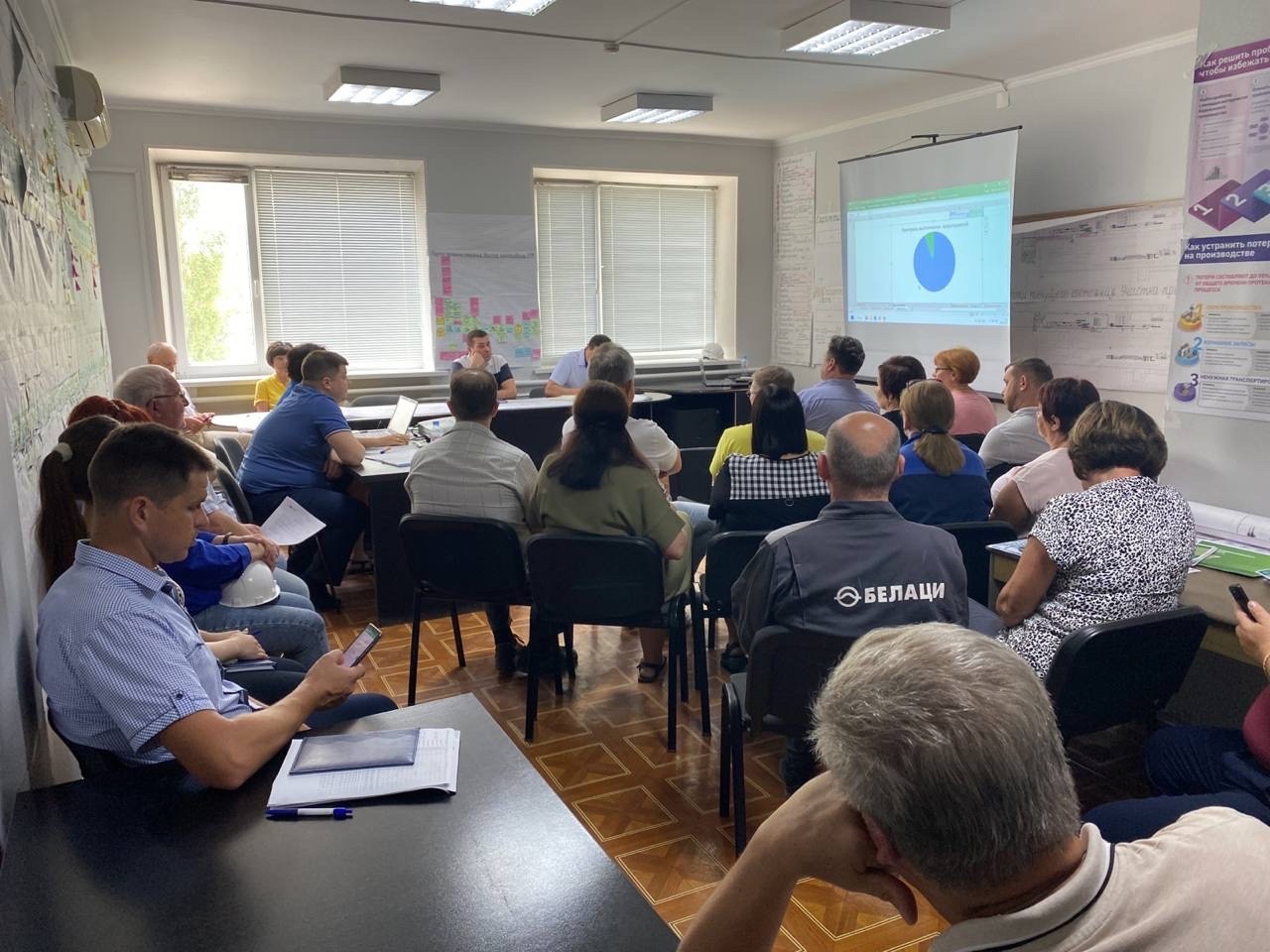 С 11 по 13 марта 2023 года на территории предприятия ПАО «БЕЛАЦИ» в рамках реализации национального проекта «Производительность труда», прошло обучение рабочих групп по темам: « Основы бережливого производства», « Реализация проекта по улучшению», «Производственный анализ», «Картирование», «5С на производстве». Обучение проекта ФЦК провёл Дмитрий Исупов.